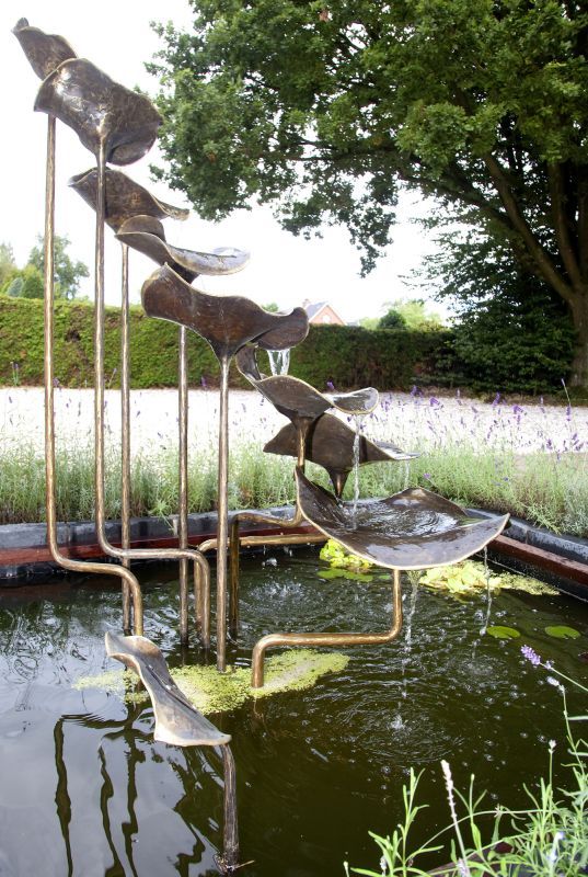 De combinatie van organische vormen, ambachtelijke textuur en zachte waterbeweging maakt dit object tot een kunstzinnige blikvanger in de tuin. Door de plaatsing in een vijver én de omliggende beplanting ontstaat een harmonieus geheel waarin het werk naadloos opgaat in de natuurlijke omgeving.