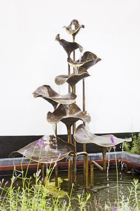 Voor een sfeervolle tuin in Soest hebben wij een elegante, ranke waterbron gerealiseerd die is opgebouwd uit een serie handgesmede bladvormen. Het beeld is ontworpen om een zachte, rustgevende waterloop te creëren die voortdurend in beweging is.