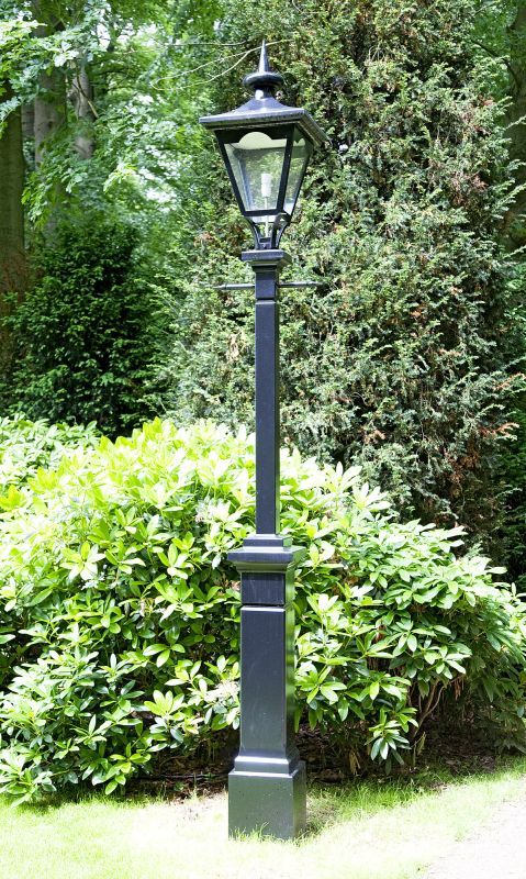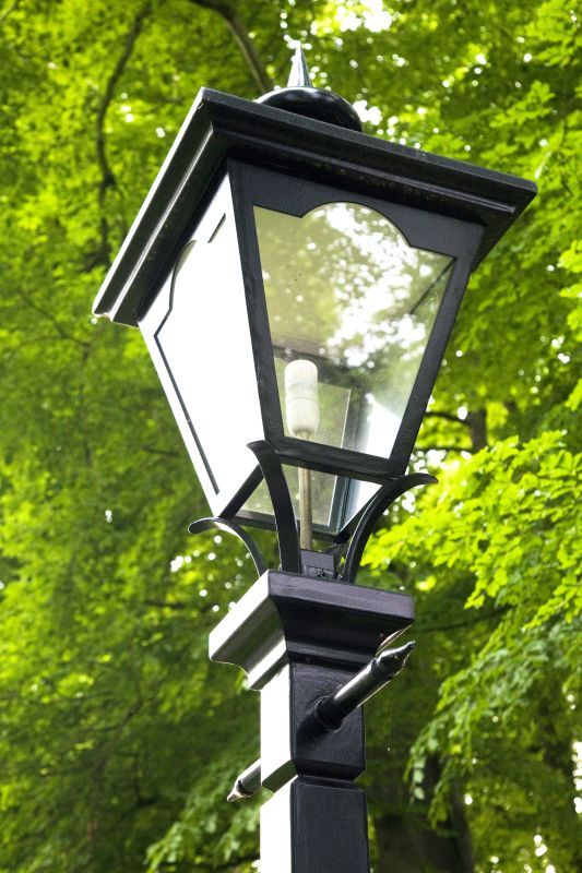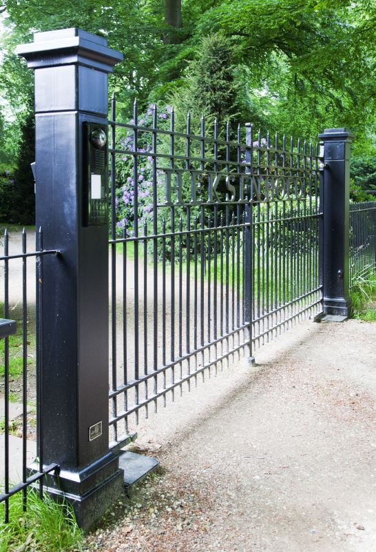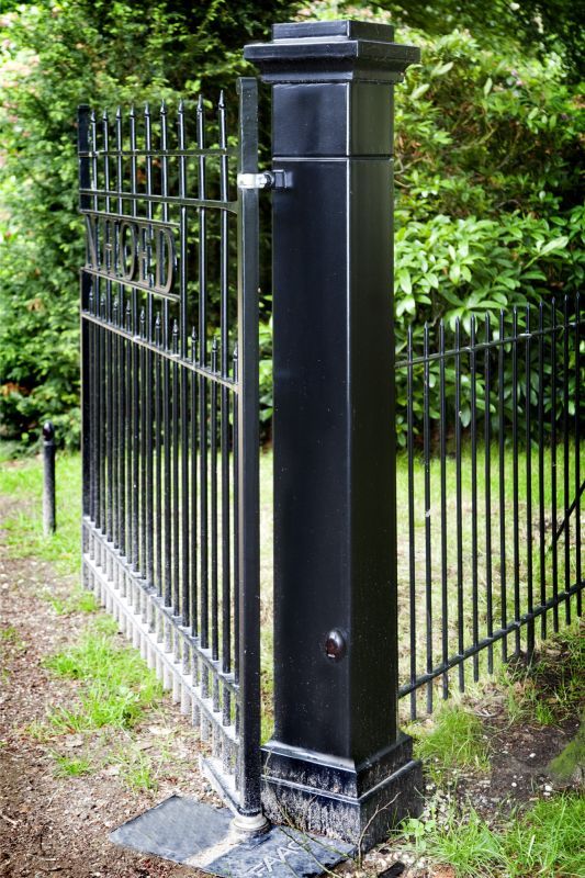 Klassieke smeedijzeren toegangspoort met terreinverlichting – De Bilt