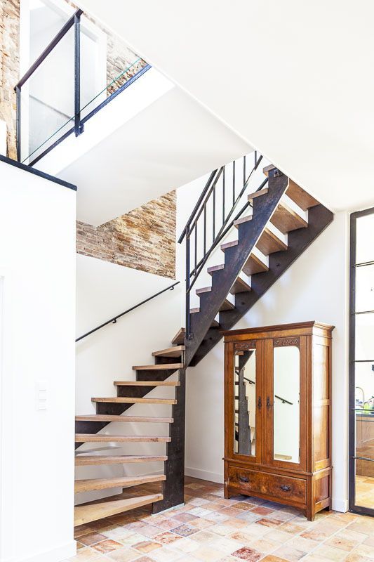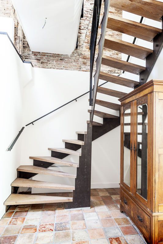 - Minimalistische wandbeugels die de leuning los laten zweven van de muur,