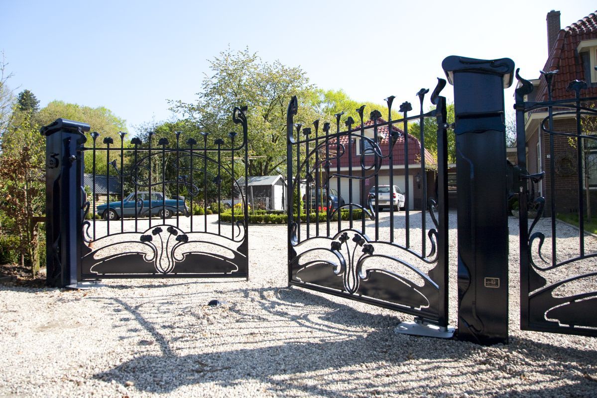 Sierlijke smeedijzeren toegangspoort met klassiek lijnenspel – Meppel