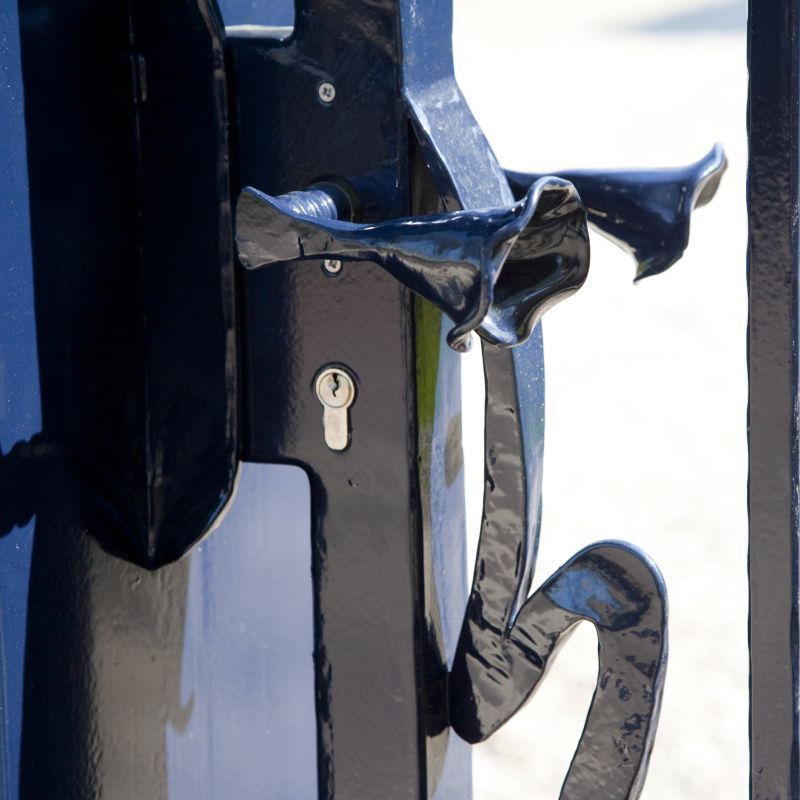 Voor een particuliere opdrachtgever in Meppel hebben wij deze elegante smeedijzeren toegangspoort vervaardigd.