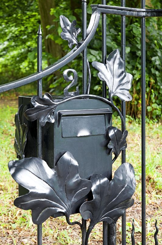 - Een op maat gemaakte brievenbusunit met dezelfde organische bladornamenten voor een stijlvol en samenhangend geheel,