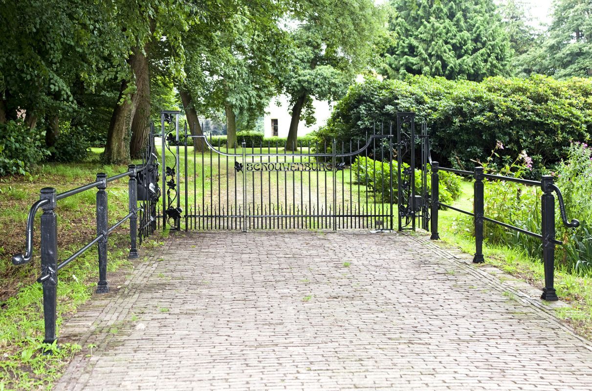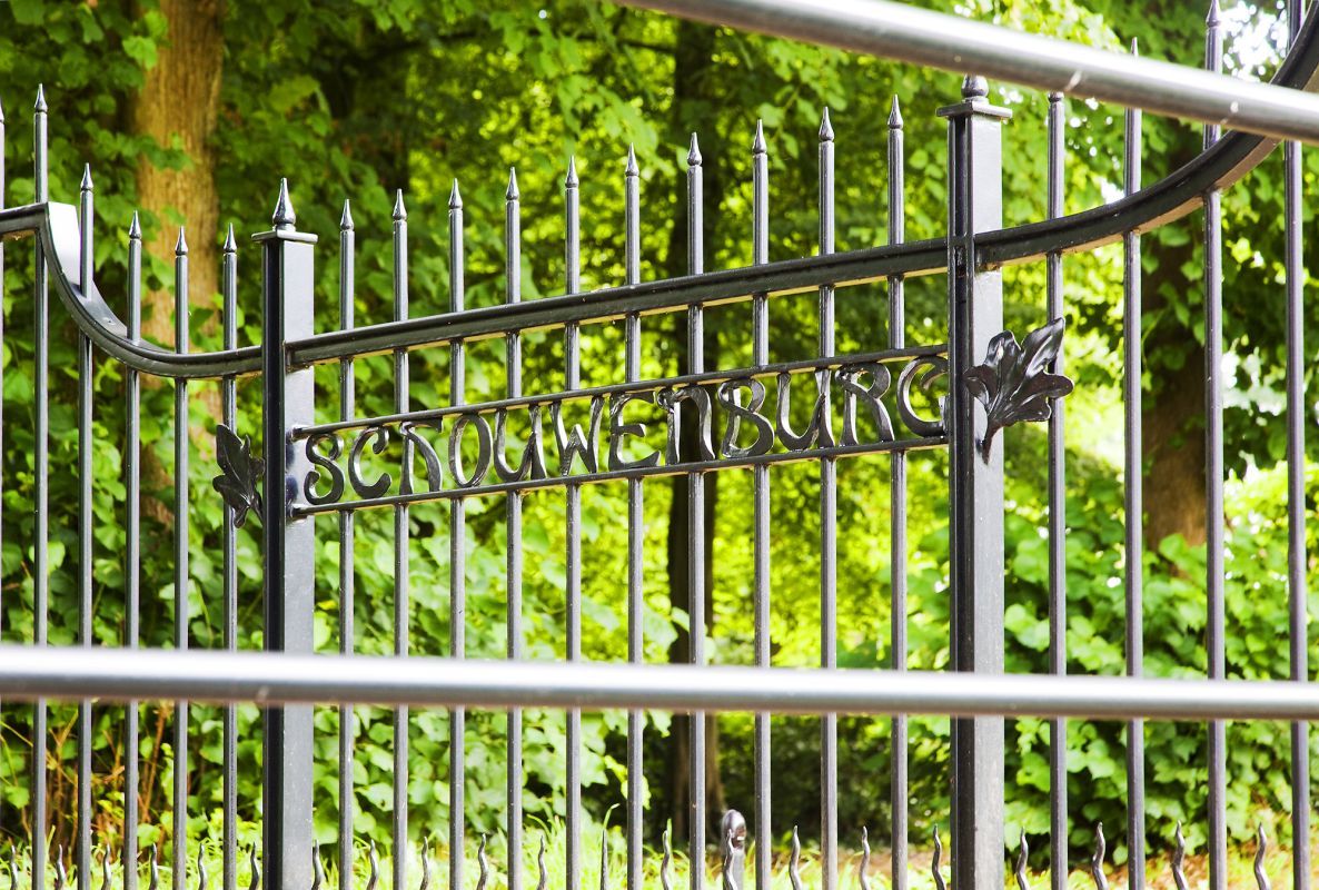 - De naam Schouwenburg uitgevoerd in karakteristieke smeedijzeren letters, zorgvuldig geïntegreerd in het hek,