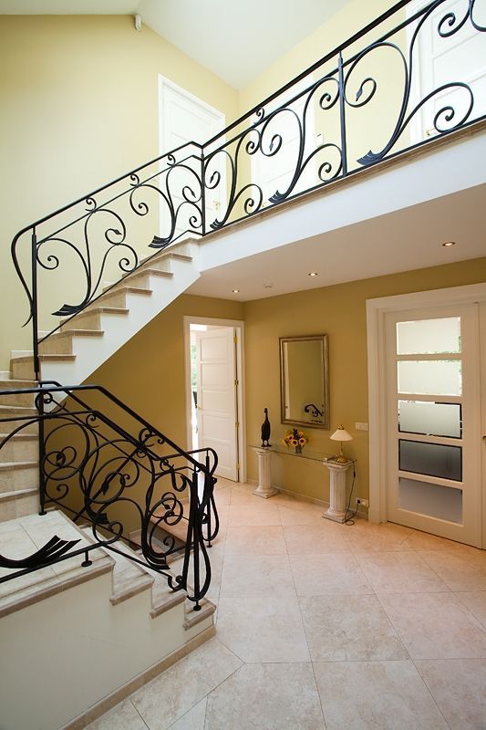Smeedijzeren trapleuningen en balustrades met sierlijke krulornamenten – Doorn