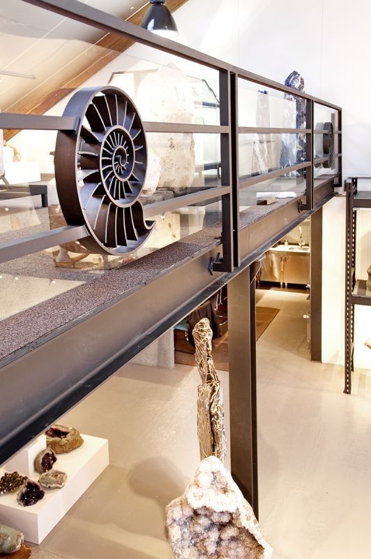 - Een uniek, handgesmeed ammoniet-ornament geïntegreerd in de balustrade, waardoor het ontwerp een artistieke signatuur krijgt,